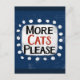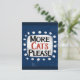 "Encore plus de chats" est un design de texte mignon en bleu avec du texte noir et rouge, ainsi qu'une forme d'accent blanc et des points fantaisistes texturés blancs qui l'entourent.