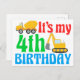 Carte Postale Enfant 4ème anniversaire garçon véhicule de constr