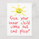 Une carte postale amusante dit : "Est-ce que votre enfant intérieur peut sortir et jouer ?"