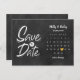 Ce boho enregistrer la carte date dispose d'un calendrier et joli coeur d'amour en or mettant en évidence votre date spéciale sur un arrière - plan de tableau noir