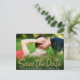 Carte postale faire-part de votre date de mariage. Utilisez votre image horizontale complète avec "Save the Date" superposée sur votre photo. Un dégradé noir apparaît le long du bas de la carte pour faire ressortir le type. Si vous n'avez pas besoin du dégradé, il suffit de l'éliminer. Customisez vos noms et votre date à l'avant et à l'arrière. Il existe une autre carte avec un dégradé blanc de type foncé disponible.