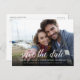 Annoncez votre date de mariage à votre famille et à vos amis avec l'élégante carte postale photo. Le texte de script tendance au-dessus de la photo est une touche moderne. L'arrière-plan propose du texte personnalisé pour vous permettre d'ajouter plus de détails mariages.