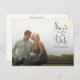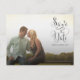 Magnifique typographie de script cursive gris/gris neutre sur le devant de cette carte postale design dans laquelle vous pouvez télécharger avec votre propre fiançailles/enregistrer le portrait photo date. Personnalisez facilement et rapidement ce concepteur imprimé professionnellement enregistrer la carte postale date ici et maintenant en tapant simplement sur l'exemple de texte et en ajoutant votre propre photo. Élégant, chic, simple et classe écriture marine / typographie cursive