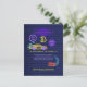 3ème invitation d'anniversaire de garçon personnalisable avec les détails de votre événement avec néon lumineux sur le thème du pilote de course.