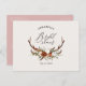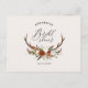 Feuillage rustique, fleurs et bois de cerf carte d'invitation de fête de shower de mariage. Avec un beau feuillage à l'aquarelle, des fleurs blanches, terracotta, rouille et rose luxuriant complétées par un design moderne noir et vert sauge et une écriture manuscrite élégante. Cette invitation moderne est sûre de définir le style de votre fête à venir.