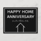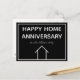 Cette carte postale Joyeux anniversaire de maison noir et blanc élégante est personnalisée avec le nom de votre agence immobilière. Ces cartes de typographie élégantes sont parfaites pour envoyer à d'anciens acheteurs de maison et leur rappeler de recommander à des amis et à la famille qui cherchent à acheter ou à vendre leur maison. Le marketing de l'entreprise immobilière signifie contacter les clients réguliers et leur demander des références. Comporte un simple dessin au trait d'une maison.