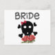 Cool squelette de mariée pour mariées de la hanche, mariées gothiques ou mariées d'Halloween. Ce crâne a un arc rouge et des fleurs rouges et le mot marié en noir et blanc.