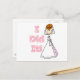 Une mariée rousse et souriante en robe mariage et en texte rose avec le coeur blanc qui dit "J'AI FAIT !" est présentée sur les t-shirts, tasses, mousepads, autocollants, cartes, boutons, porte - clés, et plus !