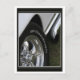 Une voiture vintage montre ses roues chromées et ses gaz d'échappement latéraux.