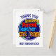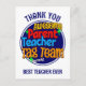 Carte postale amusante et colorée pour les parents d'élèves de l'équipe pédagogue pour montrer leur appréciation pour les enseignants de maternelle, d'école primaire, etc. qui sont sur le point de partir en vacances de mi-trimestre. Le texte indique ÉQUIPE DE CHOC PARENT ENSEIGNANT et C'EST À VOUS ! dans une typographie vive et colorée. Au verso, vous pouvez personnaliser votre message de remerciement. Cette carte postale de remerciement aux enseignants serait une excellente idée pour montrer le soutien parental en fin de trimestre.