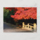 Les feuilles rouges flamboyants d'une grande érable japonaise debout à côté d'un petit pont.
