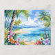Envoyez un bout de paradis avec cette carte postale de plage tropicale ! Doté de palmiers vibrants, de fleurs tropicales colorées et d'une vue sereine sur l'océan, cet artisanat de style aquarelle capture l'escapade idéale sur l'île. Idéal pour les vacances, les cadeaux de voyage, ou ajouter une touche ensoleillée à votre correspondance.