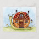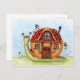 Carte Postale Escargot avec maison sur l'arrière aquarelle peint