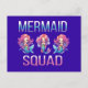 Carte postale de sirène montrant un Trio de sirènes avec des cheveux de couleur arc-en-ciel et une queue complète montrant,