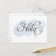Espagnol Hello - Hola dans une police cursive avec une aquarelle bleue en dessous.
