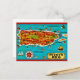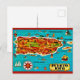 Une carte postale vintage merveilleuse et colorée de Porto Rico présentant les villes, les lieux et les étendues d'eau en espagnol !