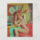 Une scène rétro-futuriste saisissante avec une femme glamour dans une pièce vibrante d'inspiration vintage avec des couleurs audacieuses, des accessoires excentriques et une ambiance nostalgique mais futuriste.