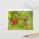 Un colibri sucré plane avant que la salvia rouge vif fleurisse contre un arrière - plan vert tendre.