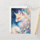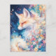 This captivating postcard features a serene red fox with its eyes closed in a moment of pure, dreamlike tranquility. The artwork is rendered in a vibrant watercolor style, utilizing a deep midnight blue backdrop that makes the fox's warm orange and cream fur truly pop. A lush arrangement of pink, purple, and yellow wildflowers sweeps across the scene, accompanied by shimmering golden light particles and drifting petals. With its mystical vibe and rich, painterly textures, this piece captures a sense of celestial magic. This postcard is a perfect choice for sending a heartfelt message, a unique birthday greeting, or a "thinking of you" note to any nature or fox lover.