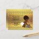 Elégante coutume vintage baby shower ethnique demander carte insert pour garçons afro-américains ou douche neutre genre avec une belle illustration vintage d'un bébé mignon et adorable avec couche blanche élégante. Il parle sur un vieux téléphone rouge rétro vous demandant s'il vous plaît apporter un livre! Il tient une petite valise bleue et son ours en peluche excentrique se penche dessus - il est tout emballé et prêt pour son arrivée ! L'arrière - plan est un joli faux papier doré avec une bordure de chevrons dorés classe, moderne et contemporaine. Chic, tendance, amusant, tendance, drôle, amusant, humoristique, fantaisiste, abordable apporter une carte de livre. VEUILLEZ NOTER : Il s'agit de graphiques imprimés à plat - pas de véritable feuille d'or ni de pièces surélevées.