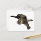 Tabby cat gris posé sur le sol s'étirant sur un arrière - plan blanc