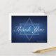 De belles nuances profondes de bleu foncé créent une texture comme l'eau sur ces cartes de remerciement formelles pour une fête de Bat ou Bar Mitzvah. Une écriture minimaliste élégante blanche sur la décoration avec le nom de votre fille ou fils avec l'étoile de David subtile pour exprimer votre gratitude pour un cadeau juif.