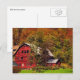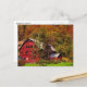 La beauté d'une journée ensoleillée d'automne est célébrée sur cette belle carte postale de photographie d'art. Voici une grange pourpre dans une vallée au fond d'une colline qui est couverte de belles couleurs de feuillage d'automne de rouge, orange, jaune, or et vert. La photographie a été améliorée pour créer un effet impressionniste et artistique.