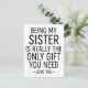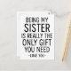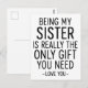 Carte Postale Être ma sœur est le seul cadeau dont tu as besoin