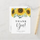 Envoyez un remerciement aux invités et aux clients avec cette carte postale de remerciement personnalisable. Il est doté de tournesols aquarelles et de feuilles d'eucalyptus. Personnalisez cette carte postale de remerciement florale en ajoutant vos propres détails d'événement. Ce tournesol merci carte postale est été et mariages de automne, douches nuptiales, baby showers et autres événements.