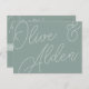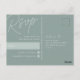 Designed to match our Script Watermark wedding invitations, this elegant typography based RSVP postcard is perfect for traditional mail-in RSVPs. Design features oversized script lettering at the top, in tone on tone shades for a watermark effect. Personalize with your desired RSVP date and custom accept and decline wording in classic serif lettering. Our Eucalyptus colorway is an elegant mix of dusty greens, featuring pale green and white lettering on a sage green background.