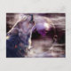 Carte postale vraiment unique Wolf Song avec un loup époustouflant hurlant une chanson, dans l'arrière - plan est la foudre du ciel et une silhouette d'un loup sur le terrain montagneux