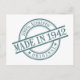 Avec un logo rond vert en caoutchouc de style tampon avec « Cent pour cent authentique » écrit en haut et « Original » en bas encadré par des étoiles de chaque côté, et « Fabriqué en 1942 » écrit sur le devant entre deux lignes en angle, c'est la carte de vœux parfaite à envoyer à quiconque est né en 1942.