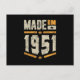 Carte Postale Fabriqué en 1951 Cadeau d'anniversaire