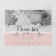 Cette jolie carte rose présente des oisillons portant des cœurs et des fleurs pour célébrer la naissance de votre petite fille. Cette photo en noir et blanc a un filtre qui transforme votre photo couleur en noir et blanc. Envoyez cette carte postale de remerciement et d'annonce de naissance de bébé, vos amis et votre famille l'aimeront. Pour obtenir le design assorti, tapez "pcl18" dans la barre de recherche. Envoyez-moi un courriel à JMR_Designs@yahoo.com si vous avez besoin d'aide ou si vous avez une demande spéciale.
