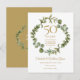 Avec une élégante guirlande de verdure boisée, cette chic carte de sauvegarde de date de 50e anniversaire de mariage botanique peut être personnalisée avec vos informations spéciales d'anniversaire doré. Le verso présente une guirlande florale assortie encadrant vos dates d'anniversaire en texte blanc élégant sur fond doré. Conçu par Thisisnotme©