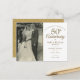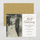 Personnalisez avec votre photo de mariage préférée et les détails de votre célébration spéciale de 50e anniversaire de mariage en or typographie chic. Le verso présente des confettis en forme de cœur en or. Conçu par Thisisnotme©