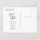 Cette élégante carte postale moderne, à l'exception de la date, est dotée d'une bordure d'aquarelle orange brûlée, recouverte d'une parties scintillant en faux or. Customisez facilement le texte de couleur or sur un arrière - plan turquoise foncé. Le verso répète les informations, ainsi qu'une adresse de retour personnalisable.