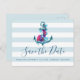 Carte Postale Faire-part Ancre D'Aquarelle Bleu Nautique Enregistrer La Dat