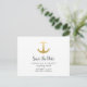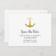 Carte Postale Faire-part Ancre Nautique Feuille Dorée Fausse | Save The Dat