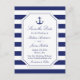 Parfait pour annoncer votre mariage, ce Save the Date est doté d'une ancre bleu marine élégante avec une corde et un arrière - plan rayé bleu et blanc. Personnalisez le texte pour vos propres détails mariages.