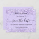 Une petite fille et tendance Enregistrer la carte Date pour une fête d'anniversaire de 40e (ou tout âge). Un fond de couleur violet lavande décoré de poussière de parties scintillant imitation. Personnalisez et ajoutez une date et un nom/âge 40. Le texte : Save the Date est écrit avec un grand script de style à la main tendance. Conseil : Si vous ne voulez pas qu'il ressemble à une carte postale, cliquez sur customiser, allez à l'arrière et retirez le séparateur et le timbre postal.
