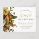 Carte postale d'annonce de déménagement de Thanksgiving élégante et moderne avec un beau bouquet floral botanique d'automne et une typographie chic dorée sur fond blanc.