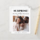 Carte postale drôle d'annonce de fiançailles avec votre photo et "Surprise ! Nous sommes enfin fiancés" dans un mélange de typographie moderne et de script. Personnalisez avec vos prénoms au recto et un message personnalisé d'annonce de fiançailles ou de sauvegarde de la date au verso.