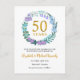 Cette carte postale d'annonce de sauvegarde de date pour le 50e anniversaire de mariage présente une délicate couronne de verdure florale faite de jacinthes, de plantes et de fleurs de lilas. Elle peut être facilement personnalisée avec vos informations de renouvellement de vœux dorés spéciaux.