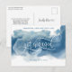 Carte Postale Faire-part Aquarelle bleue, Fraîchement fiancée, Fiançailles