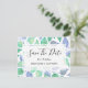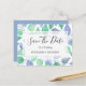 Carte Postale Faire-part Aquarelle Dusty Blue Feuilles mariage Enregistrer