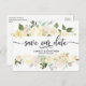 Élégant et moderne ENREGISTREZ NOTRE DATE cartes postales pour envoyer vos invités. Calligraphie en script noir. Bouquet floral aquarelle en beige, ivoire, rose, vanille, couleurs champagne. Modèles personnalisés en ligne pour faciliter l'édition. Ajoutez votre texte devant et derrière la carte. Contactez le concepteur pour les demandes spéciales.