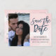 Carte Postale Faire-part Aquarelle rose pâle Laver Enregistrer la date Phot