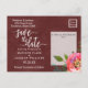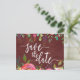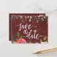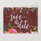Automne Burgundy Aquarelle Mariage floral Enregistrer la date PostCard. Avec une police de style de script de brosse tendance! ~ Modifiez facilement la couleur arrière - plan de l'aquarelle, il vous suffit de cliquer sur "Personnaliser" Faites défiler le texte et les images jusqu'à ce que vous voyiez la zone de couleur arrière - plan, et sélectionnez votre couleur personnalisée. Assurez-vous de cliquer sur le bouton "Précédent" et de faire de même.