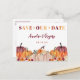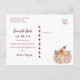Automne Sauvez notre date Carte postale avec fleurs et citrouilles d'automne dans les tons brun roux, orange mandarine, merlot profond, bordeaux et crème d'hiver.